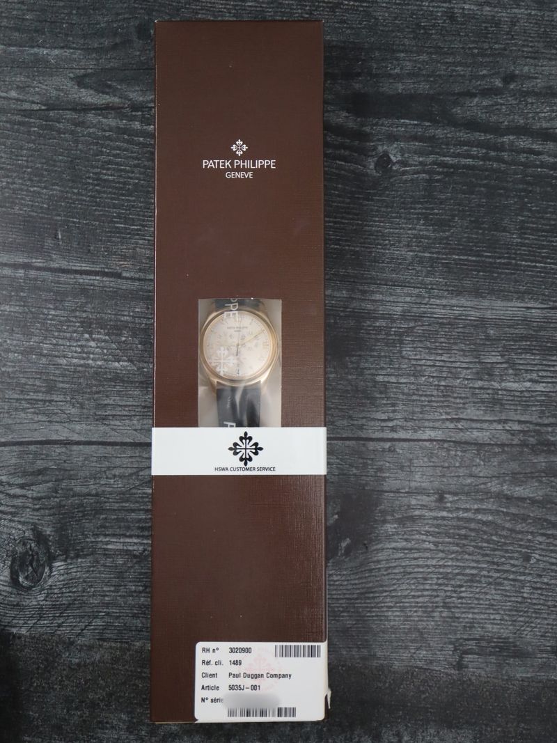 J40650: Patek Philippe 18k Annual Calendar, Ref. 5035J, 2025 Patek Service Papers, SEALED