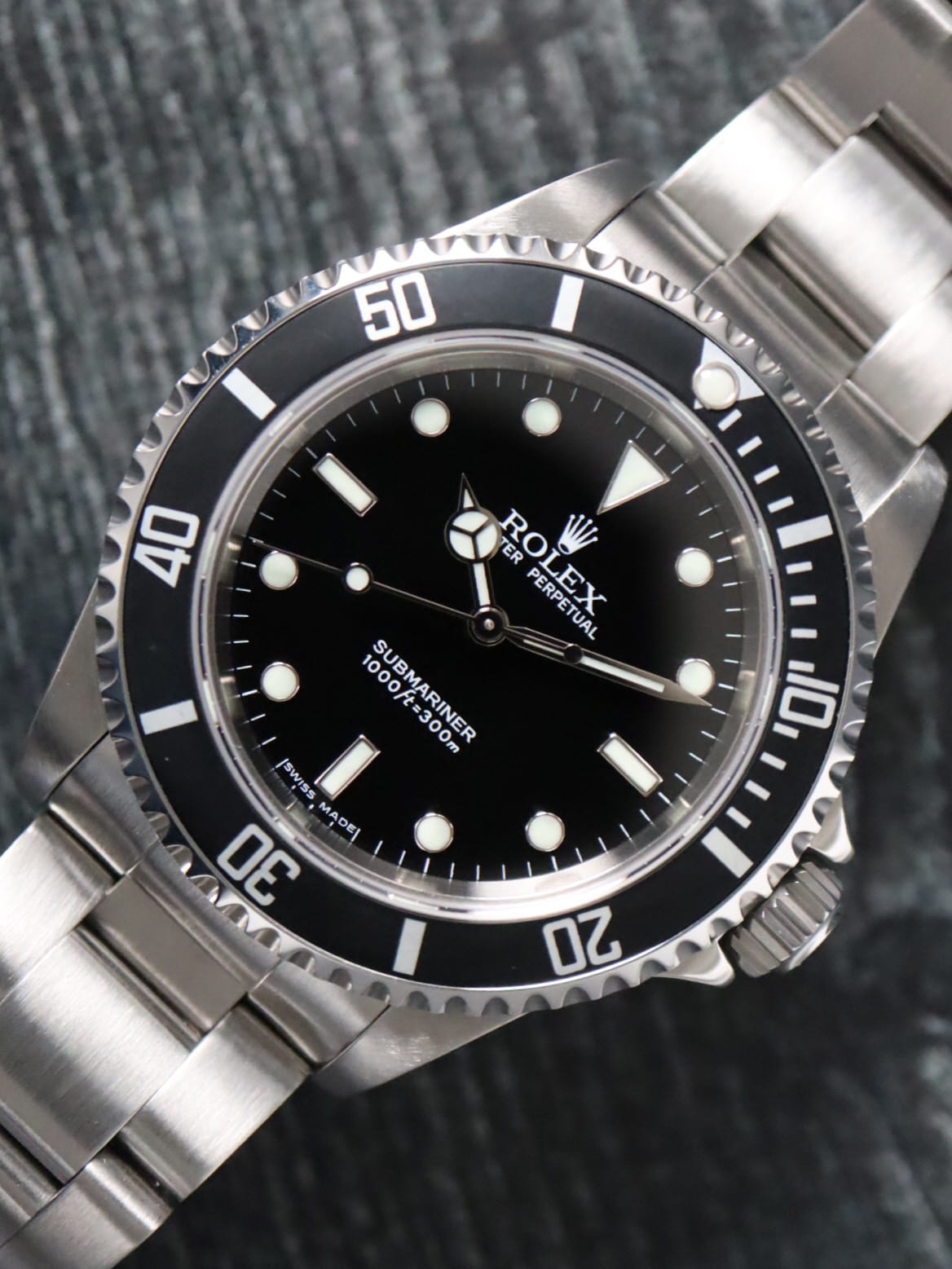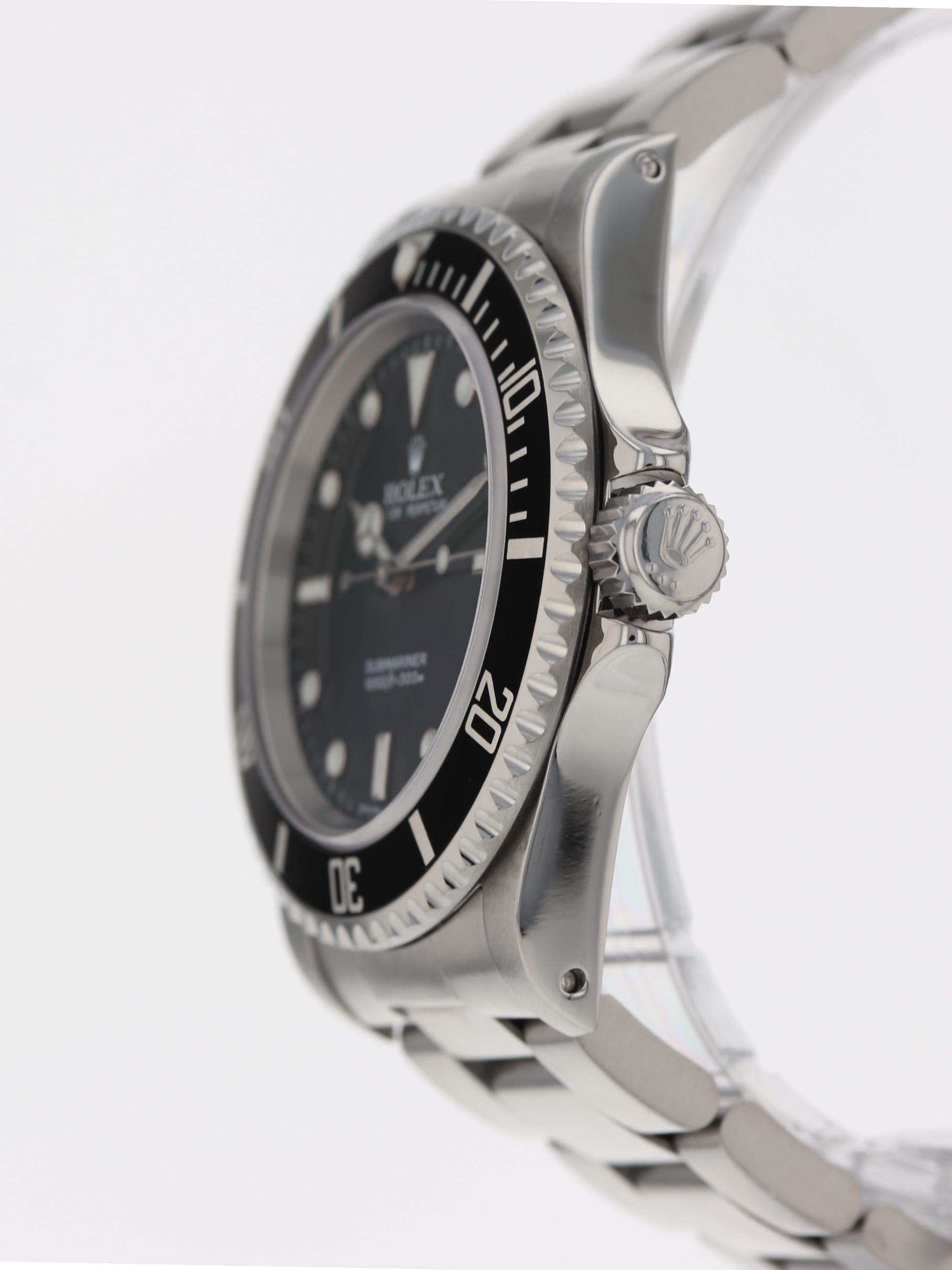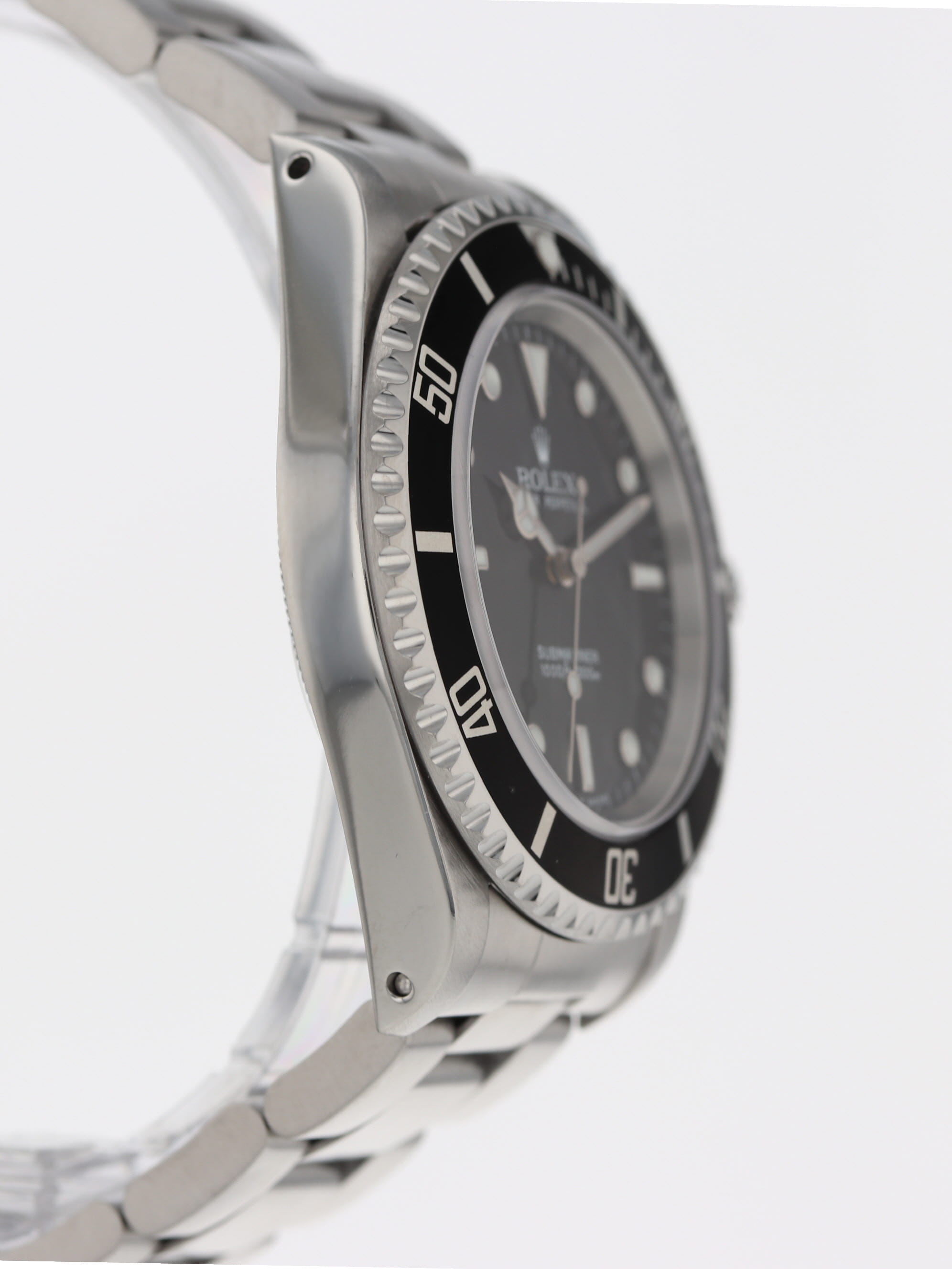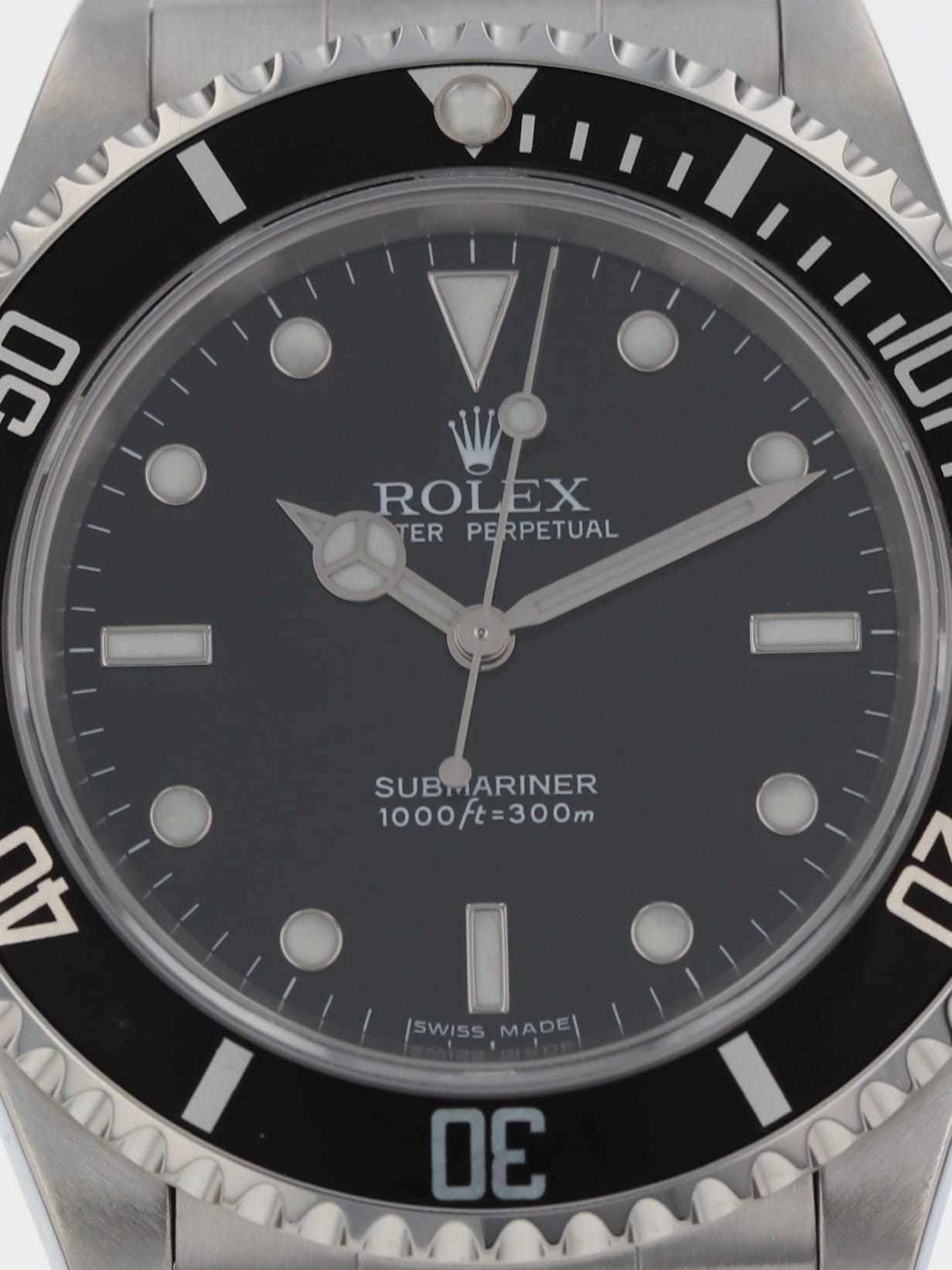 Rolex stainless steel Submariner "No Date", automatic, size 40mm. Rolex ref. 14060M with a stainless steel case and Oyster bracelet with flip-lock clasp, black index "2-line" dial, luminescent markers and hands, sapphire crystal, black rotating bezel. "D" serial, circa 2005. Rolex CPO box and CPO card dated Jan. 2025. One year full warranty.