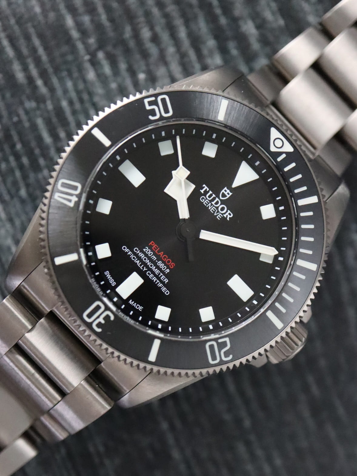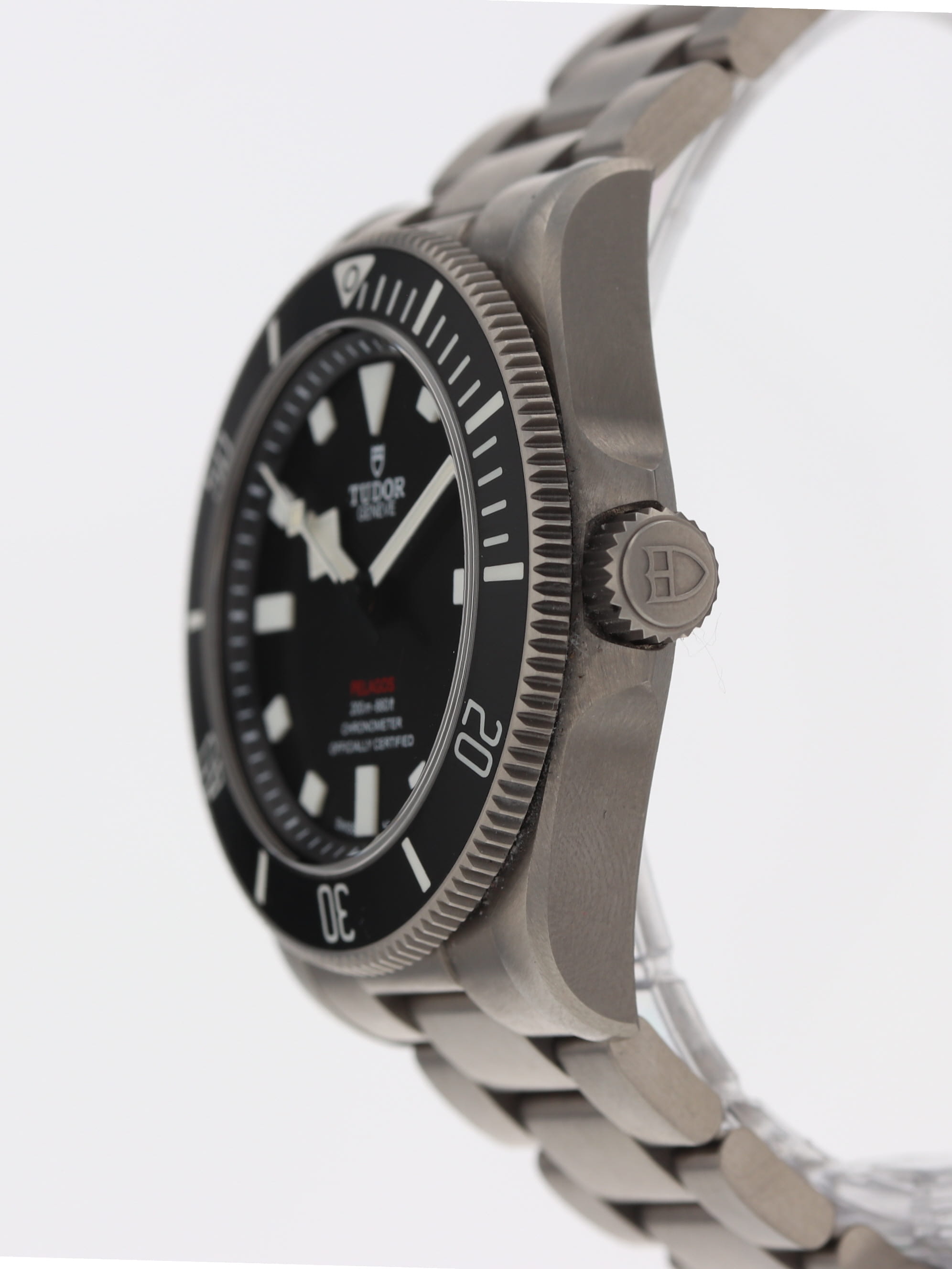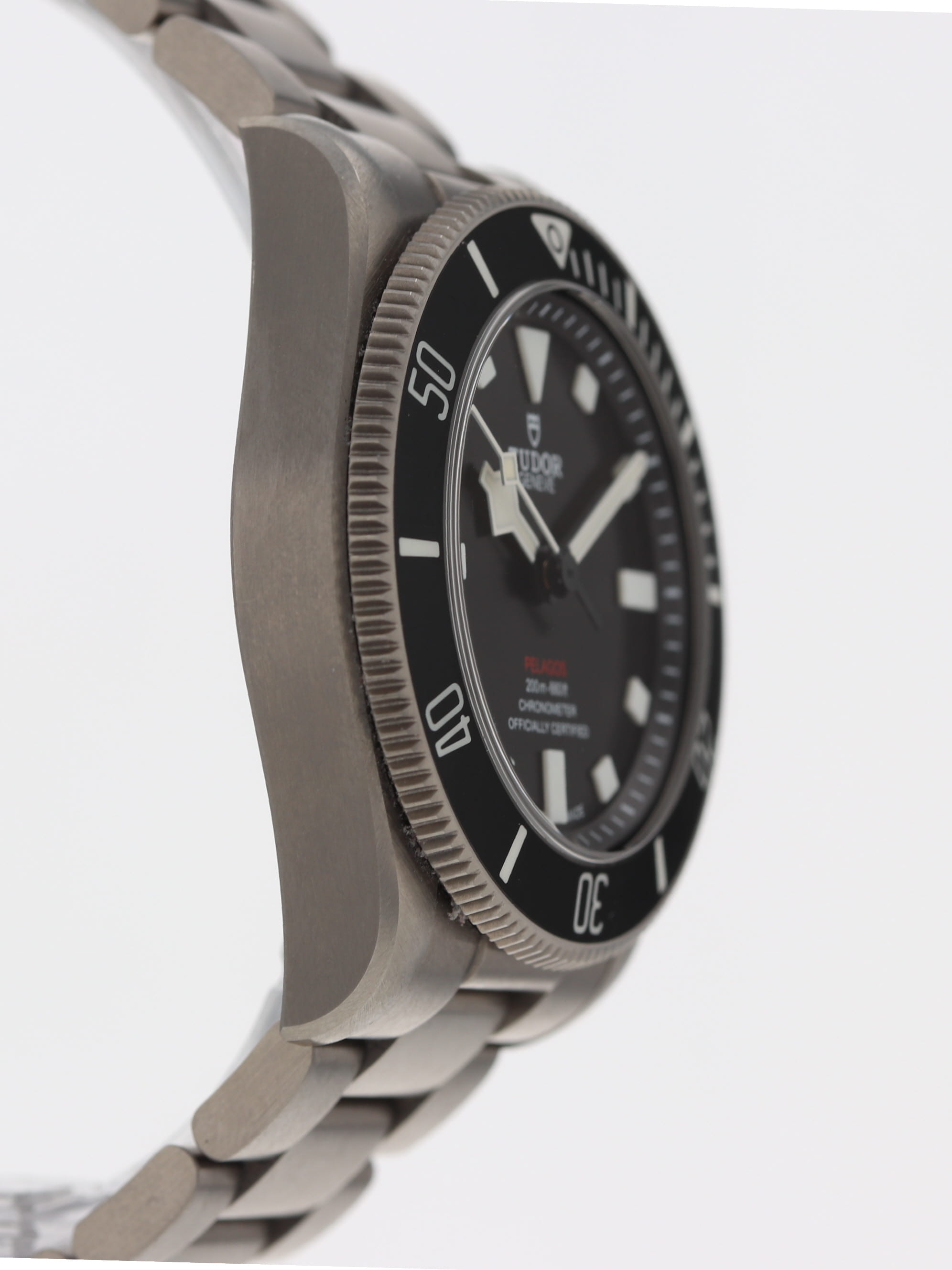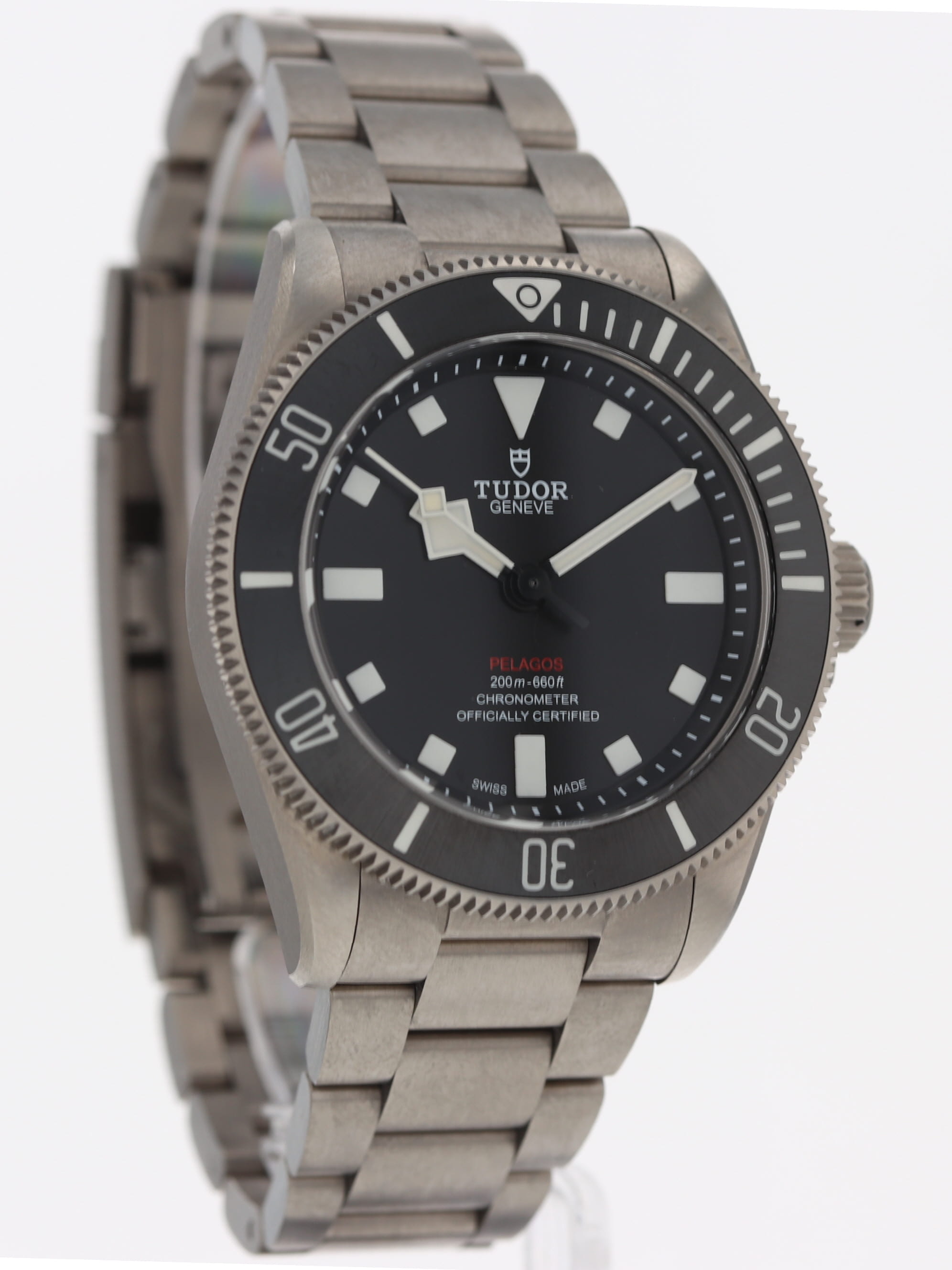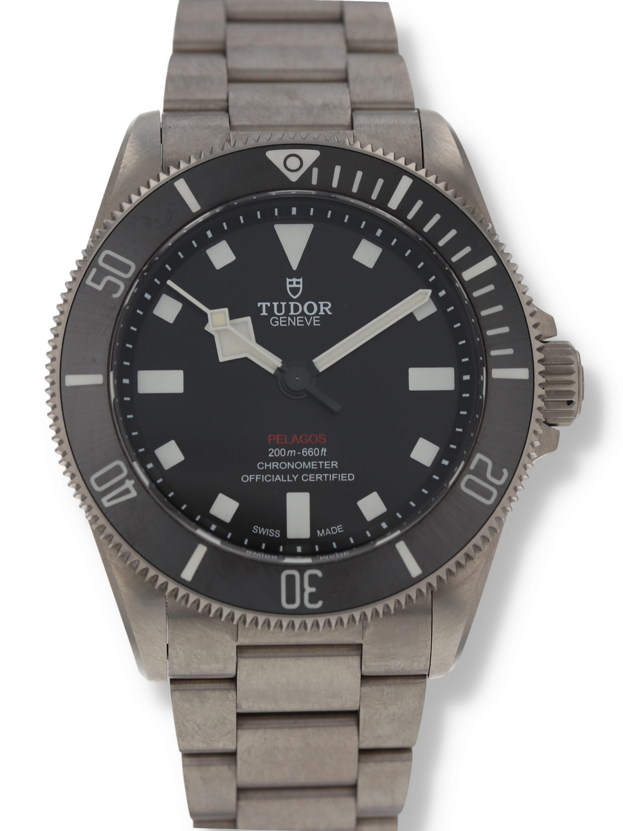 Tudor titanium Pelagos, automatic, size 39mm. Tudor reference 25407N with a titanium case and Oyster bracelet with divers' extension, black dial, black Ceramic unidirectional rotating bezel, luminescent markers and hands, sapphire crystal. Tudor box and 2025 card. Additional rubber strap with pin buckle. Five year full warranty. List Price: $5,250.