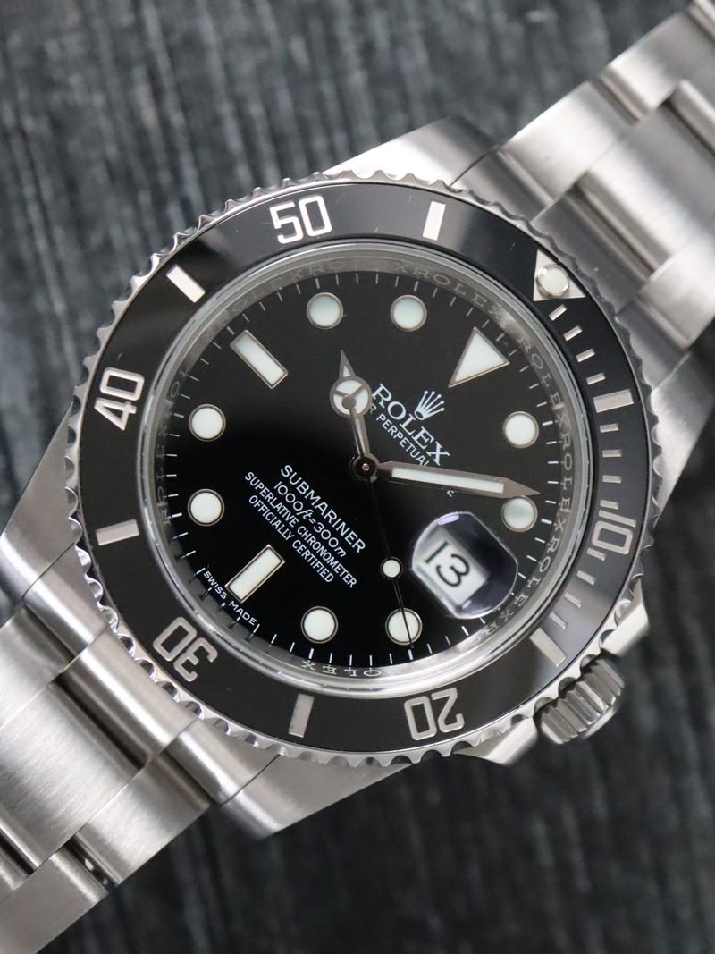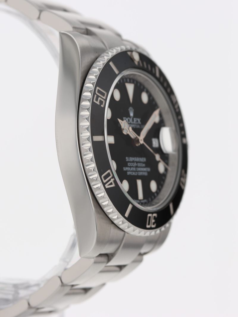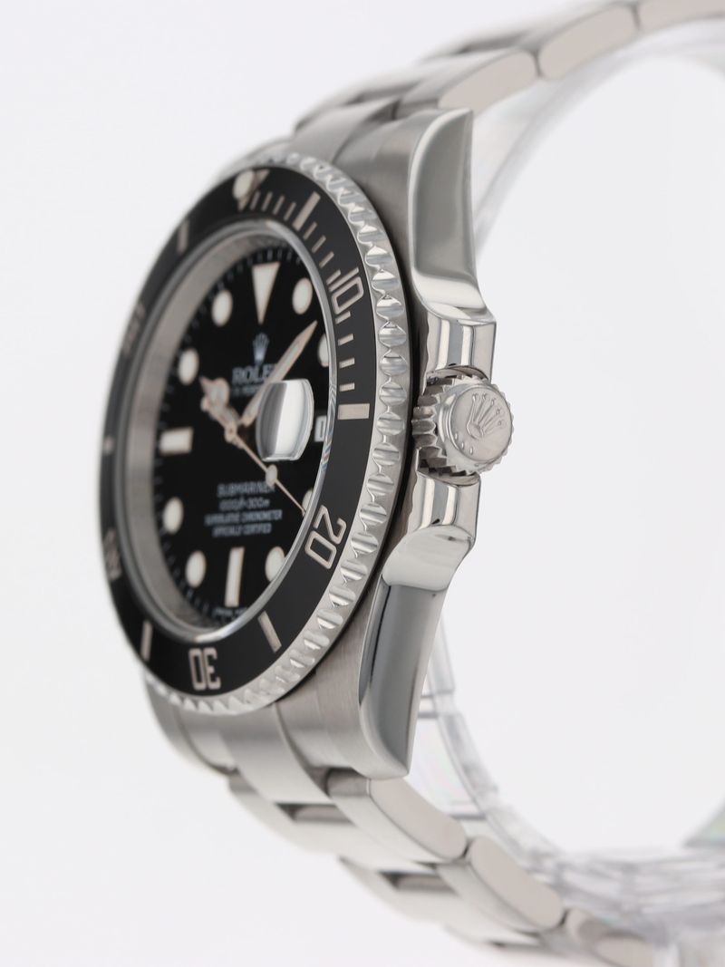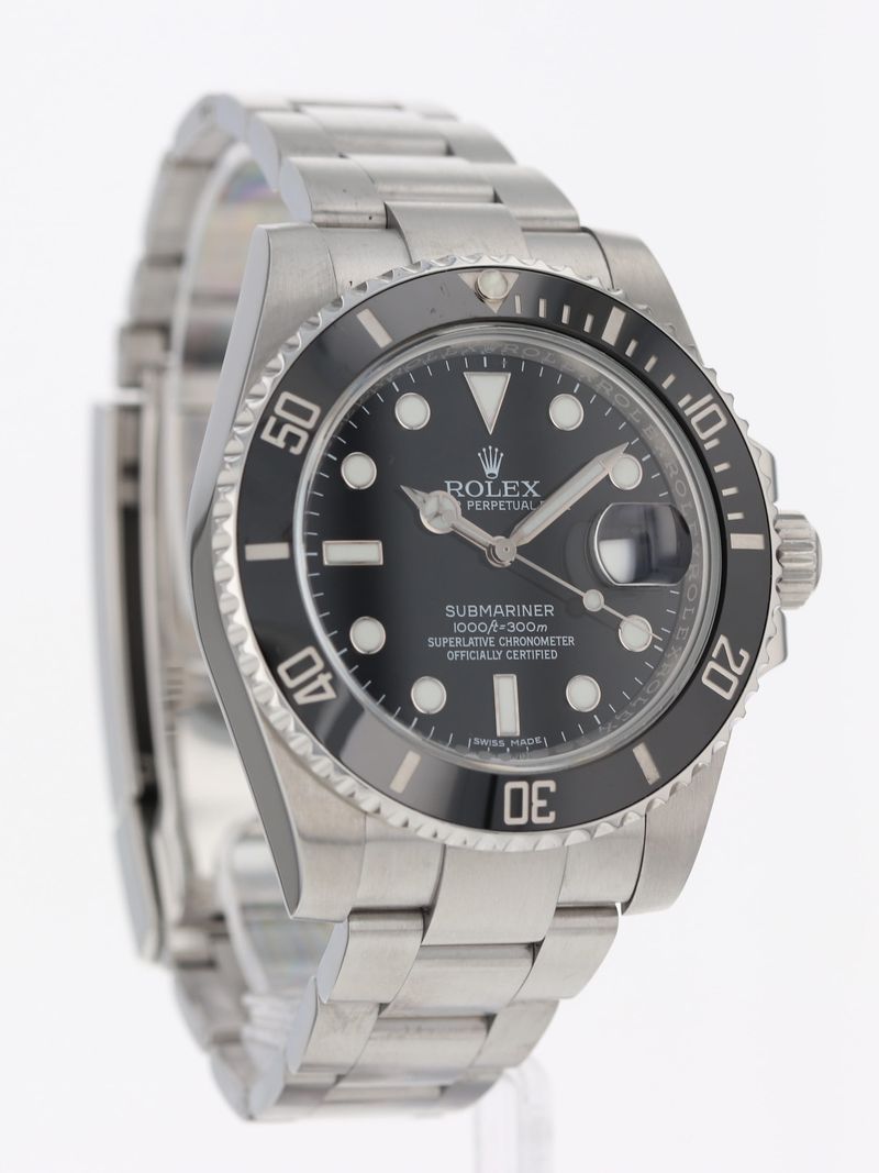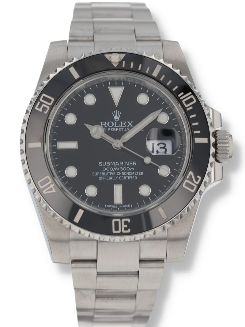 Rolex stainless steel Submariner, automatic, size 40mm. Rolex reference 116610LN with a stainless steel case and Oyster bracelet, Folding Oysterlock safety clasp with Rolex Glidelock extension system black rotating Ceramic bezel, black index dial, luminescent markers and hands, sapphire crystal. One year full warranty.