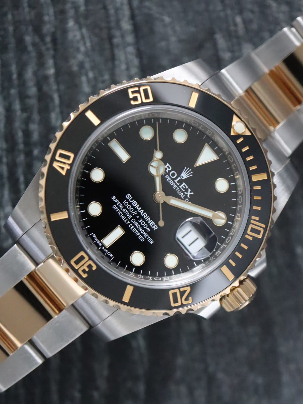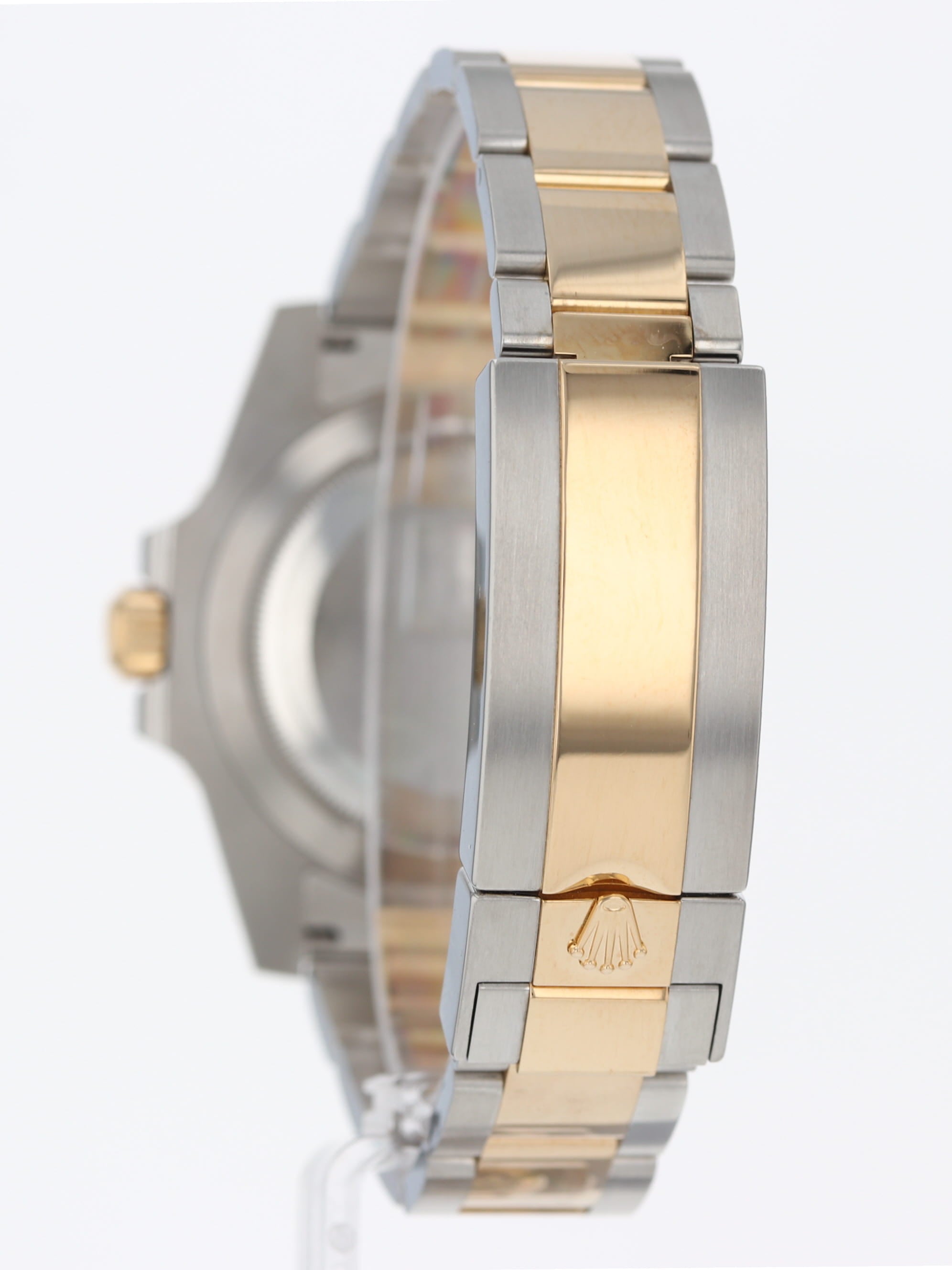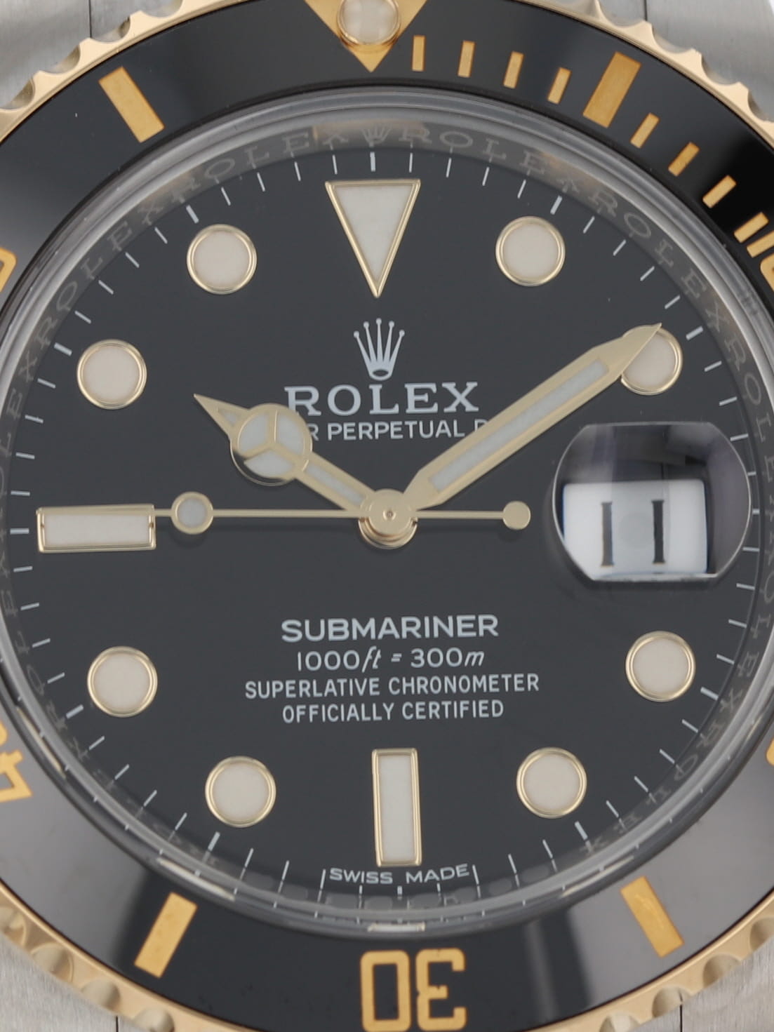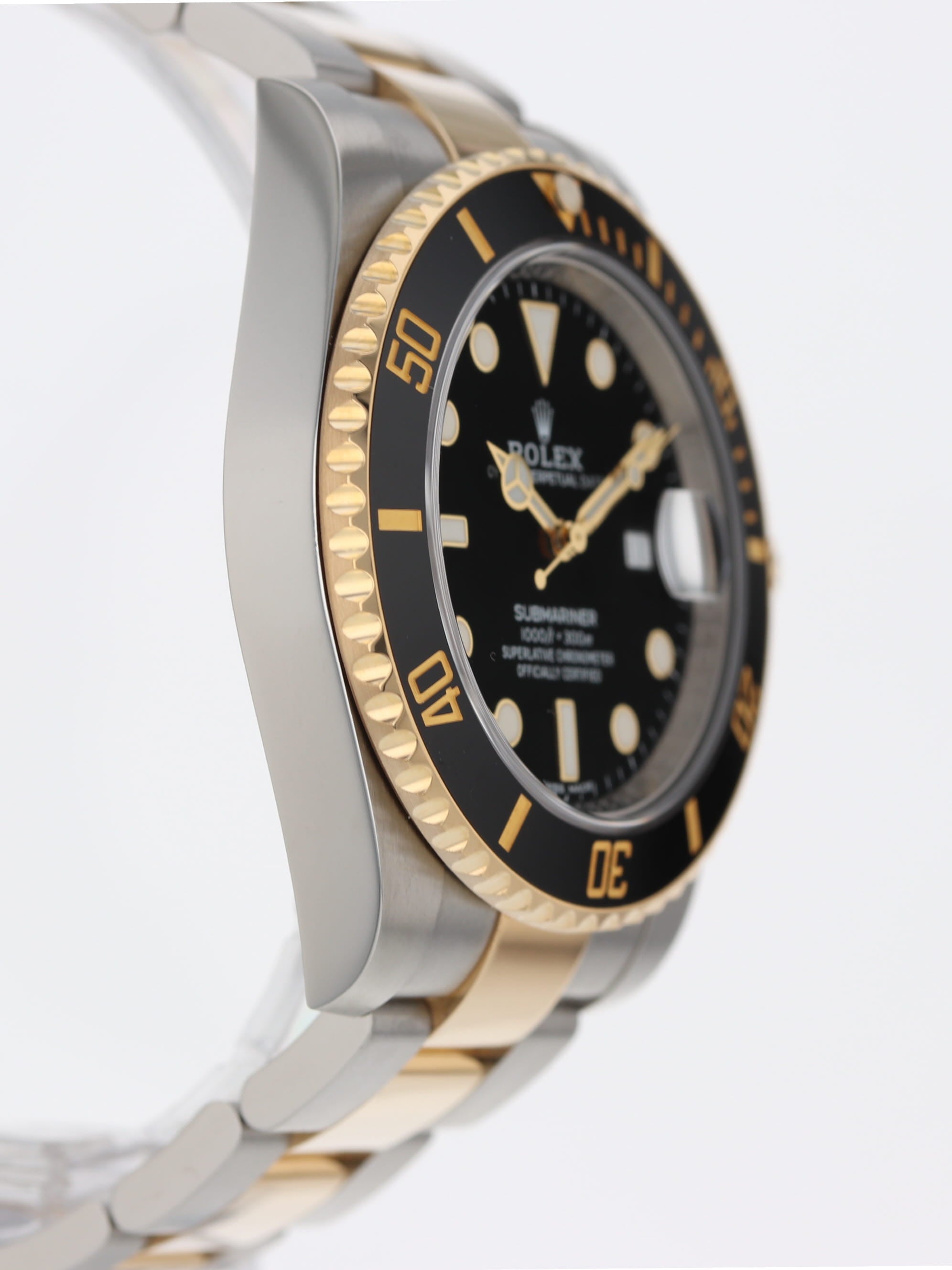 Rolex stainless steel and 18k yellow gold Submariner, automatic, size 40mm. Rolex reference 116613 with a stainless steel case and two tone Oyster bracelet, Folding Oysterlock safety clasp with Rolex Glidelock extension system, 18k uni-directional black Ceramic bezel, black index dial, blue luminescence, magnified date display, sapphire crystal. Rolex box and 2018 card. One year full warranty.