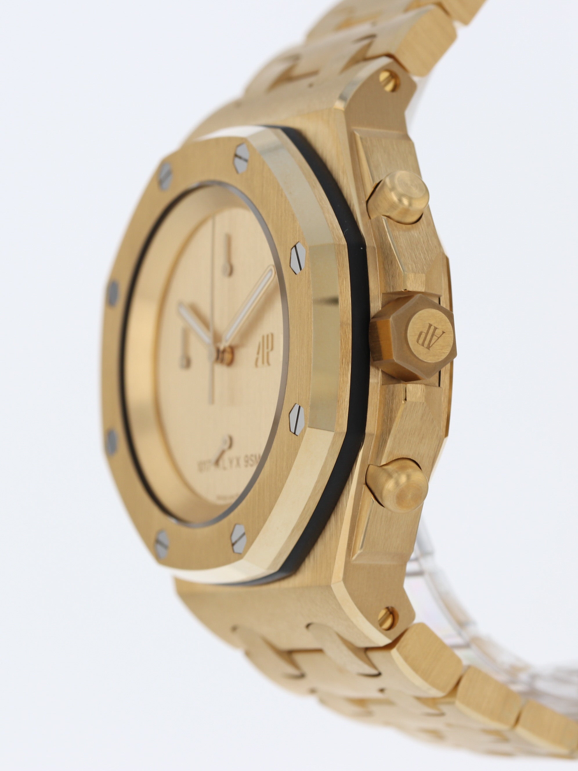 Notes: Limited edition of 76. This monochrome yellow gold Royal Oak Offshore Chronograph was designed by international fashion designer Matthew Williams who has put the focus on timeless elegance and understated sophistication.